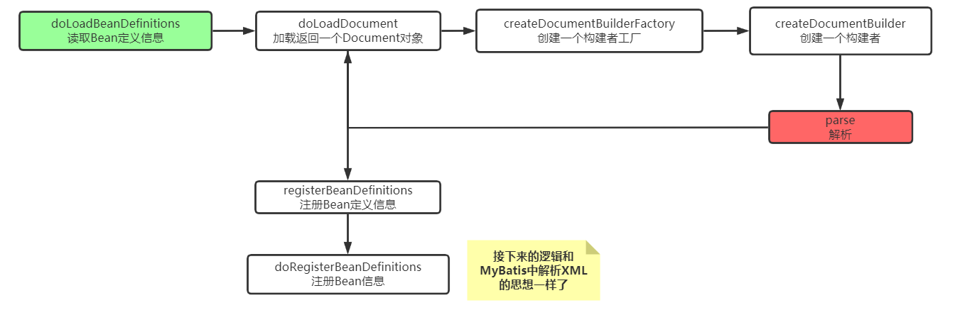 可以get到,它主要就是创建了一个工厂BeanFactory,并且解析了配置文件,加载了Bean定义信息(面试的时候直接答这个点就够了,如果想说的可以将下面的bean信息加载聊聊)