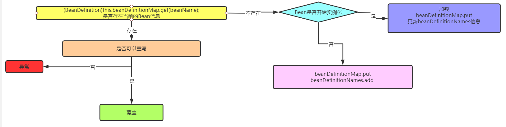 此时所有的Bean定义信息都被保存到了BeanDefinitionRegistry接口,然后走子类DefaultListableBeanFactory工厂的注册方法