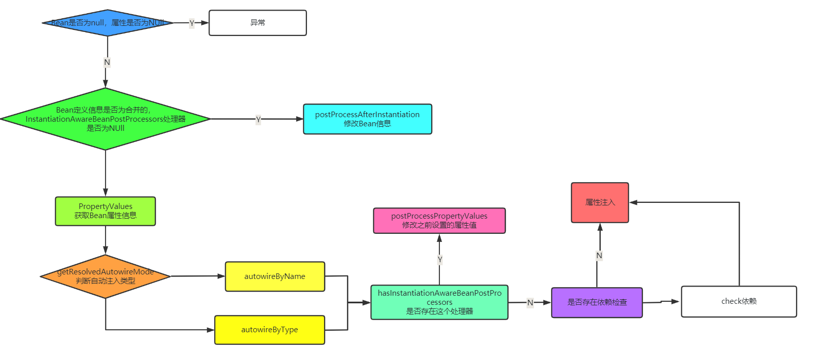 首先判断传入的Bean是否为null,如果为null则判断Bean定义信息中是否存在属性值,如果存在,异常;如果不存在跳过