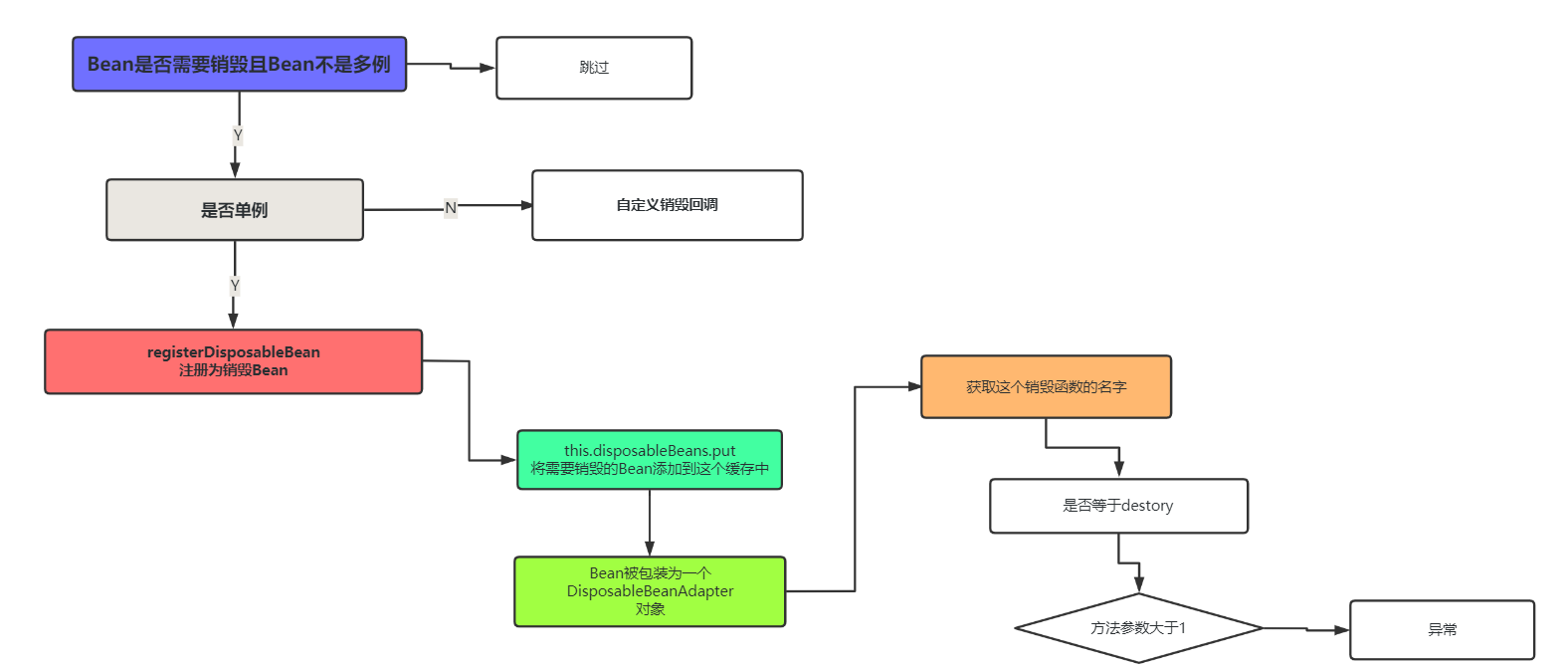 对于其他作用域来说,自定义了销毁回调函数,不过最后还是封装为DisposableBeanAdapter