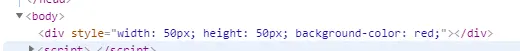 div.style="width:50px;height:50px;background-color:red;";