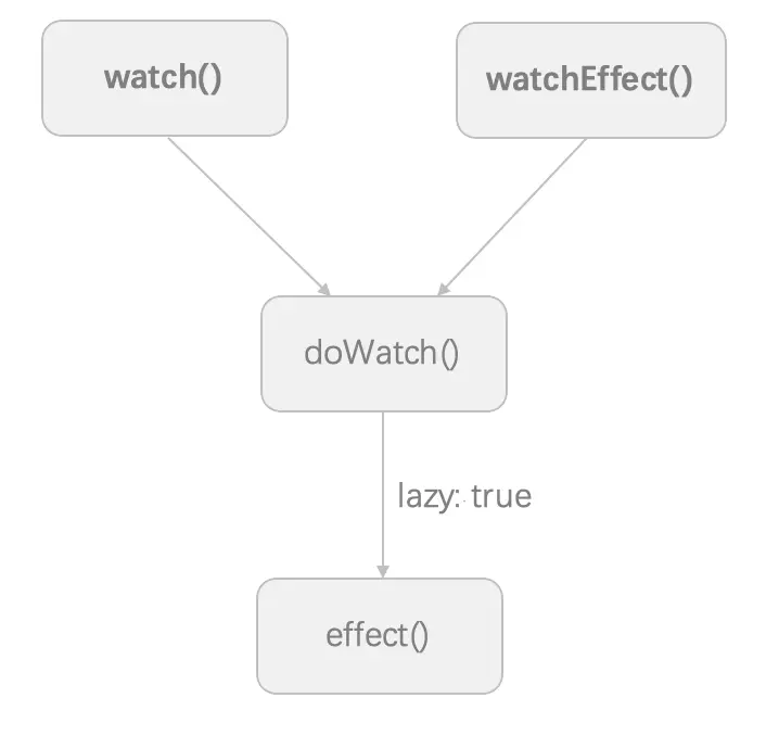在前文中我们看到了 watch/watchEffect 对 effect() 的间接调用。实际上除了名称相近,其调用方式也差不多: