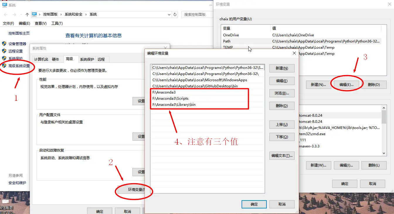 Windows用户注意:如果在 “Advanced Installation Options”中没有勾选“Add Anaconda to my PATH environment variable.”(添加Anaconda至我的环境变量),则无法在CMD或者powershell中使用conda命令,需要打开菜单中的 Anaconda Prompt 才能使用conda命令,因此请各位根据自己的情况选择勾不勾选。如果没勾选,但是后来又反悔了,可以通过配置环境变量来解决这个问题: