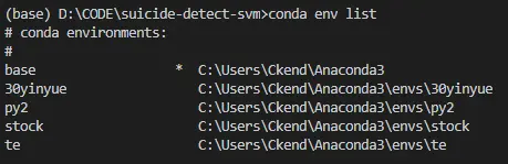 到这里,我们就可以开始使用conda环境了,默认情况下,现在Python命令都是基于conda的,因此你的终端或CMD前都会带有(base)的字样: