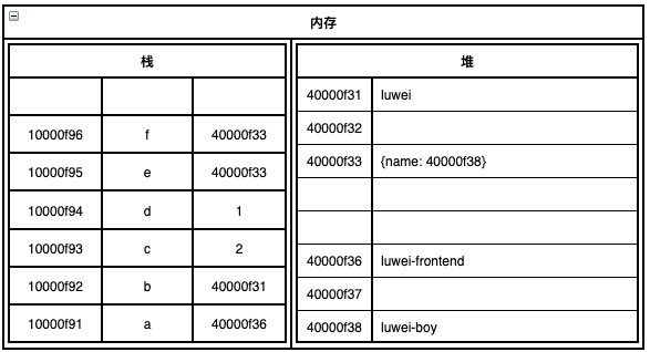 - 如果是其他类型的值,JavaScript引擎会在堆中申请一个内存空间,然后把这个值保存在堆中,再将这个值在堆中的引用赋值给这个值在栈中的内存空间