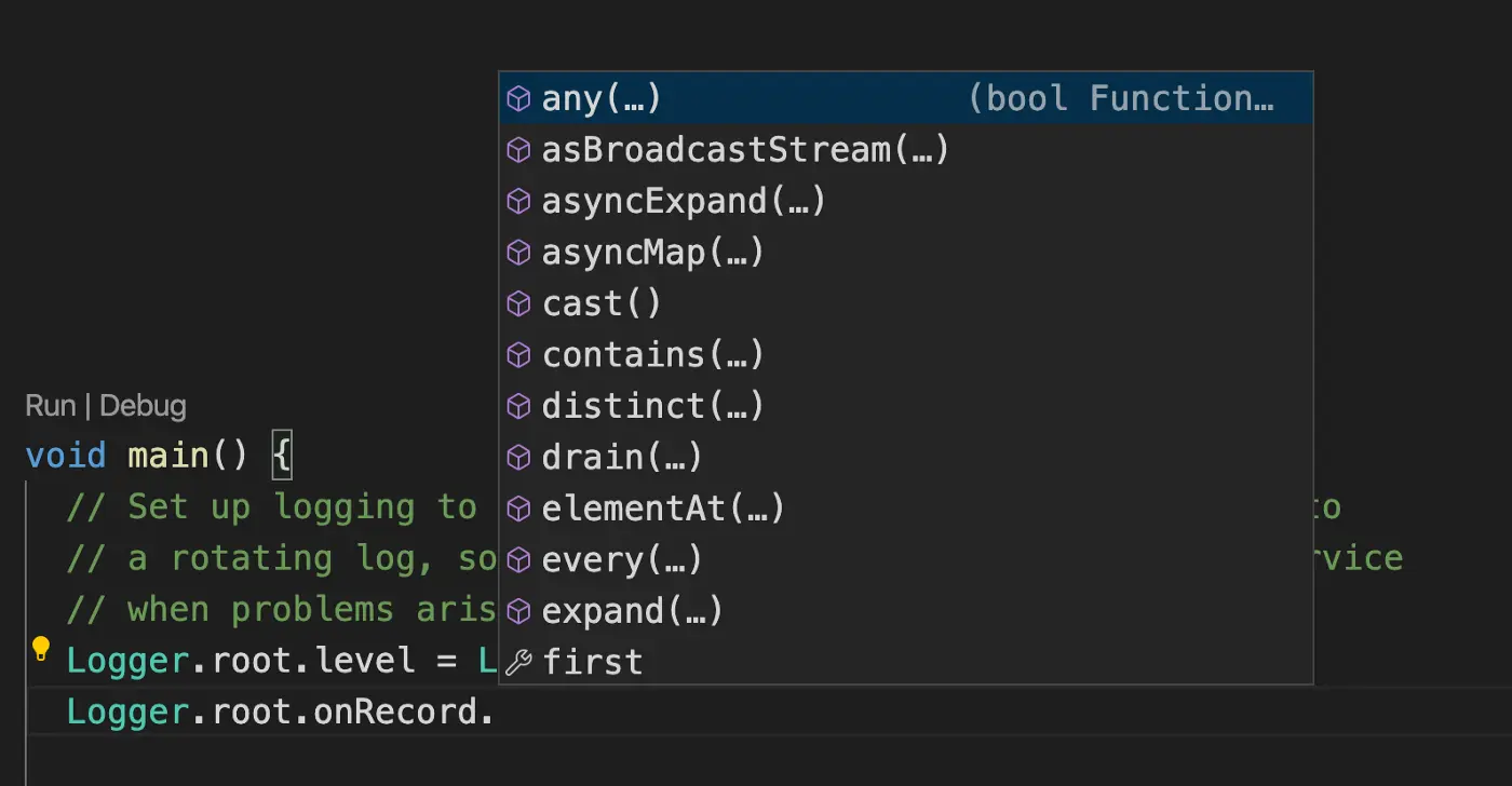 Dart分析服务器在各种IDE中提供静态分析和智能。这意味着你可以得到代码补全...