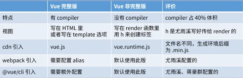 - 非完整版: 后缀为 vue.runtime.js
