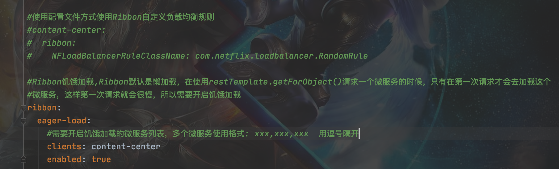 //@RibbonClient(name = "content-center",configuration = RibbonConfig.class)