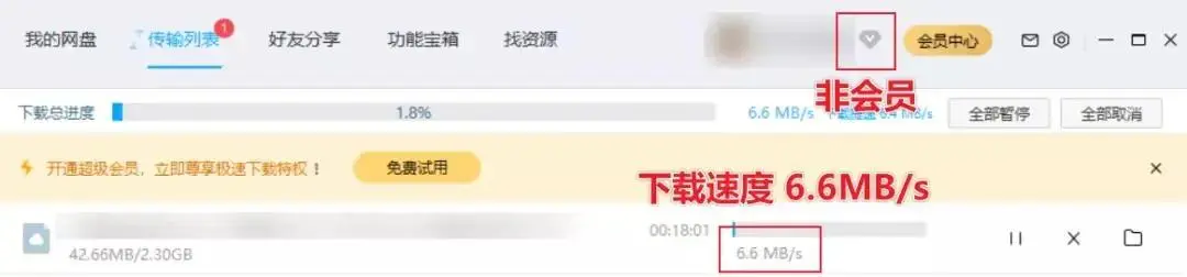 当然,如果你要下载的是朋友分享给你的私人文件什么的,那么这个下载速度还是很可能会被打回原形的。