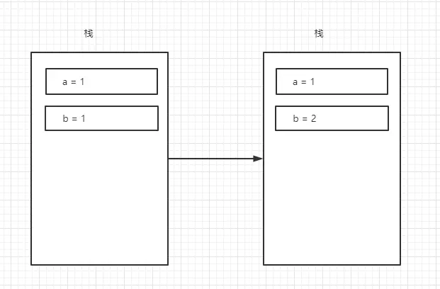 - a 赋值给 b 的过程中,其实是将 a 的值赋值给 b ,a 属于简单数据类,那么,就在栈中新开辟空间进行存储