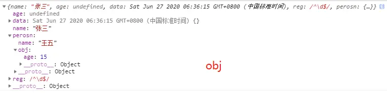 解析:我们发现确实是实现了深拷贝,源数据的 "王五" 并没有更改,但是也暴露了问题