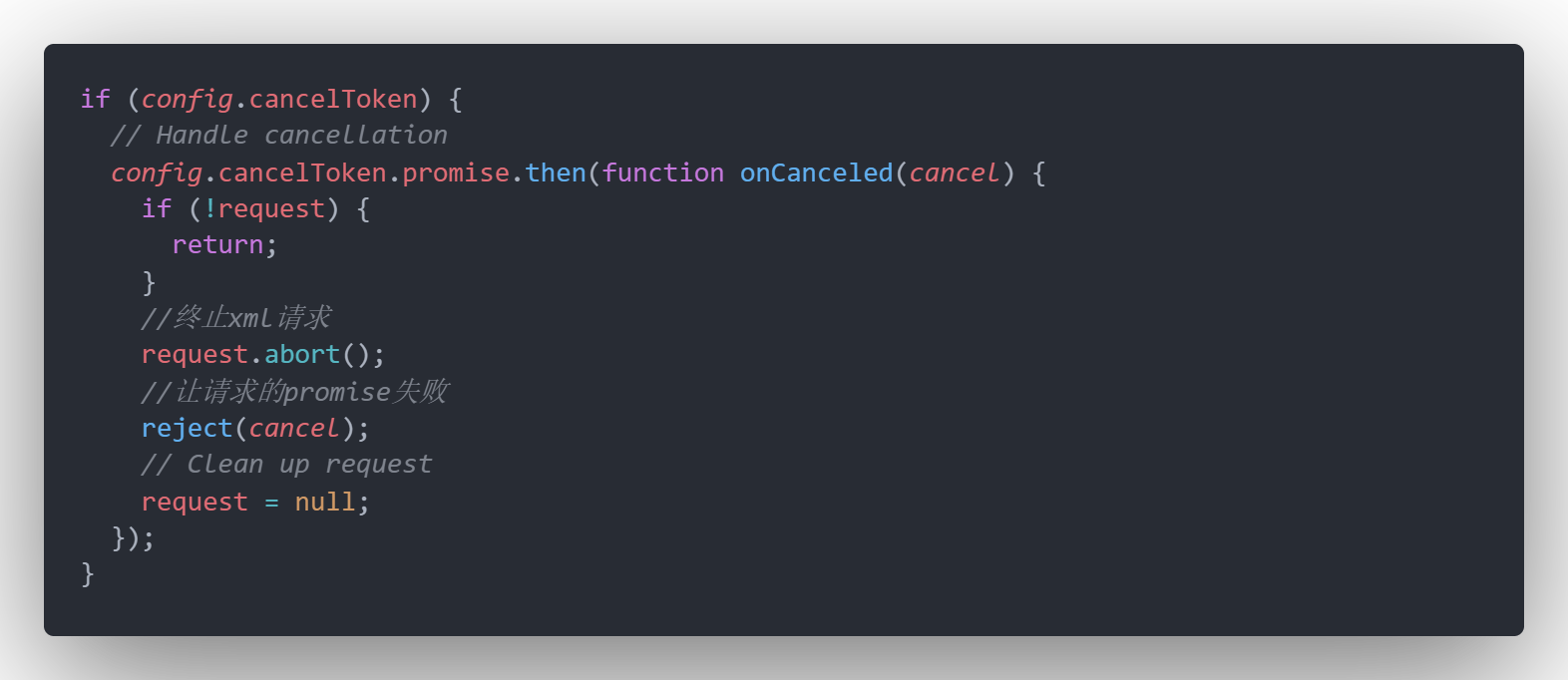 cancelToken函数设计很巧妙,了解了cancelToken的工作流程之后会对promise有更加深入的了解。