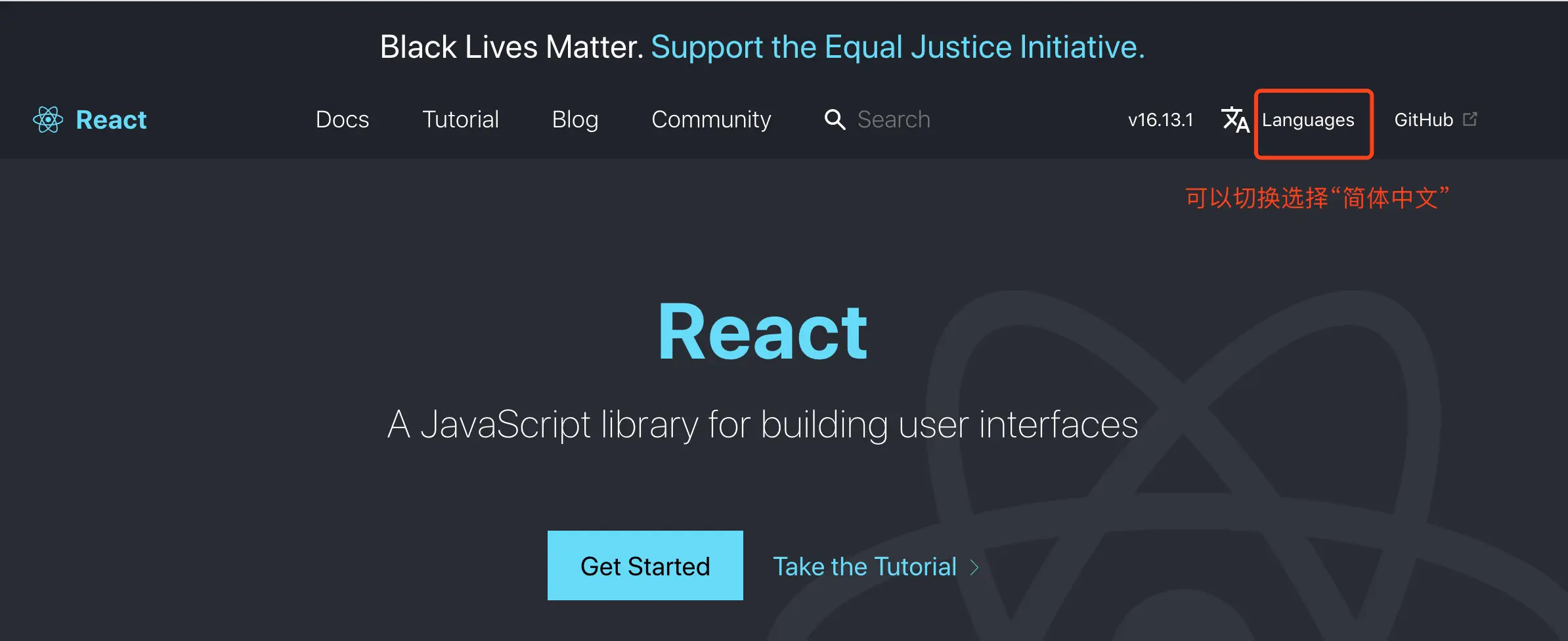切换到简体中文的文档地址(默认最新版本)为:zh-hans.reactjs.org/