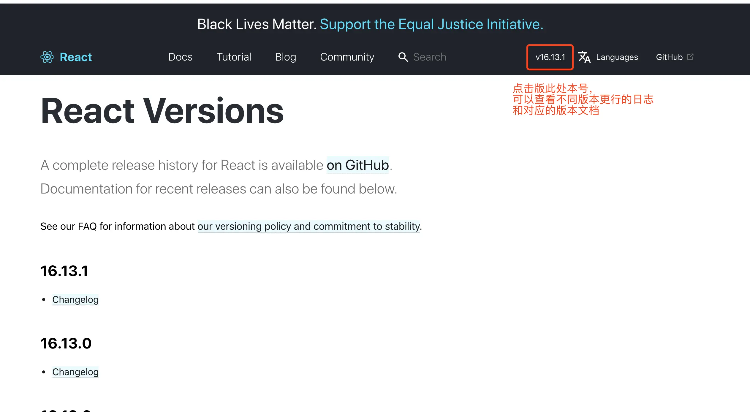 查看reactjs.org/versions/此页面,我们可以知道从v16.8到v16.13.1的文档并未更新,只更新了日志。所以我们可以放心的查看16.13.1的文档(其实跟v16.8的文档一样,并没有什么改变)