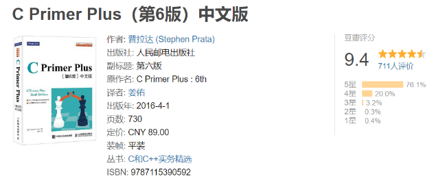 和这本书同一时期出版的很多书籍都已经废弃了,唯独Stephen Prata的《C Primer Plus》依然屹立不倒,并且越来越受欢迎,在C语言同类书籍中的地位不言而喻,据说销量已经几百万册,堪称经典中的经典。如果你在稍微有些C语言基础的时候,能够选择这本书作为辅助阅读,一定会事半功倍。