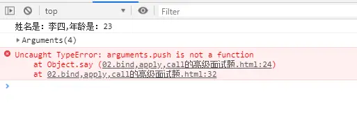 person1.say.call(person2,1,2,3,4) // 姓名是:李四,年龄是:23,参数:1,2,3,4