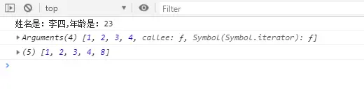 person1.say.apply(person2,[1,2,3,4]) // 姓名是:李四,年龄是:23,参数:1,2,3,4
