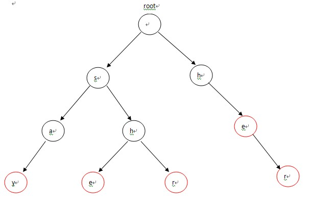 首先,将这5个单词构造成一棵Tire,如图所示。