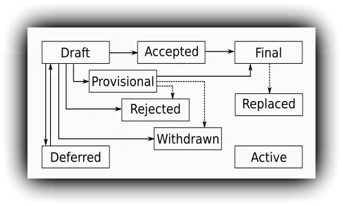 一篇PEP是否最终被接受并且决定去实现是需要经过层层复审的,反正要经过很麻烦了一个流程,下面有个Python官方画的简单流程图: