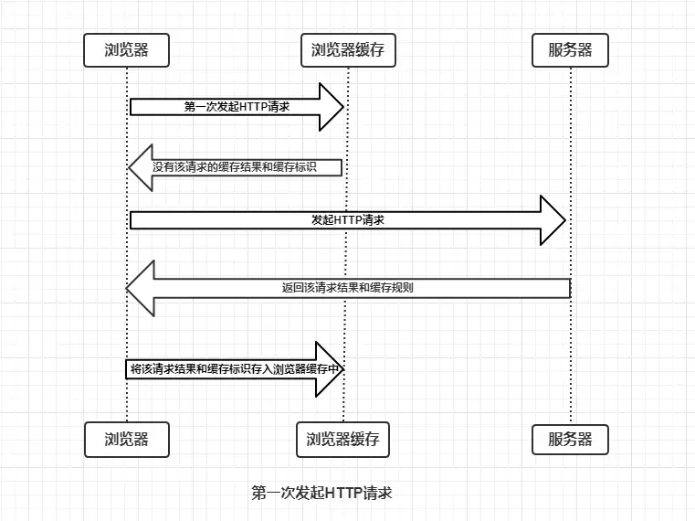 浏览器第一次向服务器发起该请求后拿到请求结果,会根据响应报文中HTTP头的缓存标识,决定是否缓存结果,是则将请求结果和缓存标识存入浏览器缓存中。