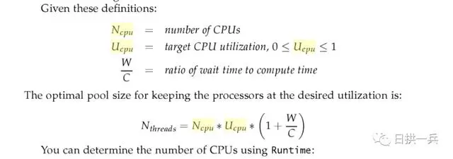 按照上面公式,假如几乎全是 I/O耗时,所以纯理论你就可以说是 2N(N=CPU核数),当然也有说 2N + 1的,(我猜这个 1 也是 backup),没有找到具体的推导过程,在【并发编程实战-8.2章节】截图在此,大家有兴趣的可以自己看看