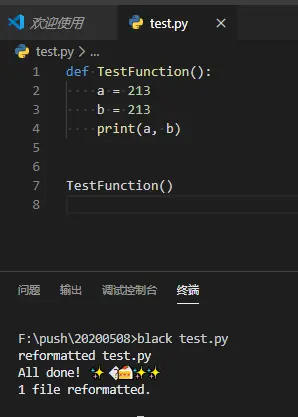 它就会自动格式化该Python文件,如果你是使用VSCode,我推荐使用这种方法来格式化。