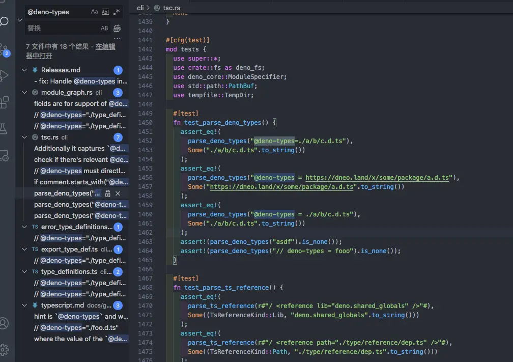 3.1找到 parse_deno_types 单元测试用例