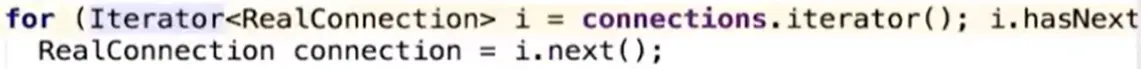 - 遍历队列中所有的RealConnection,类似Java中标记清除算法,首先标记出最不活跃的connection连接(空闲连接)。