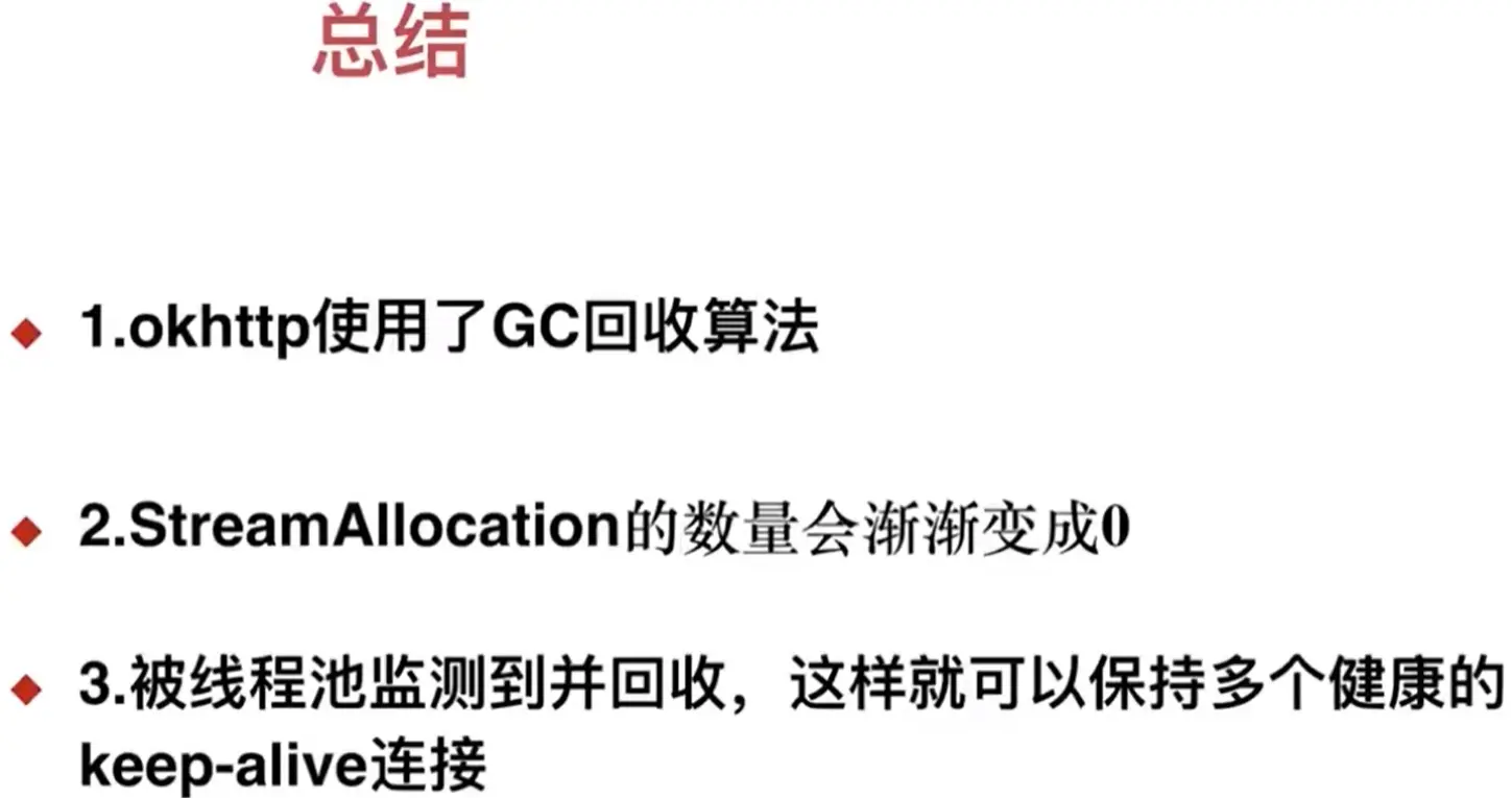 - 当连接(StreamAllocation)的数量变为0时,会被线程池ConnectionPool检测到