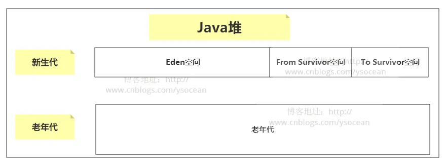比如,对于 HotSpot 虚拟机,它将堆空间分为如下两块区域:
