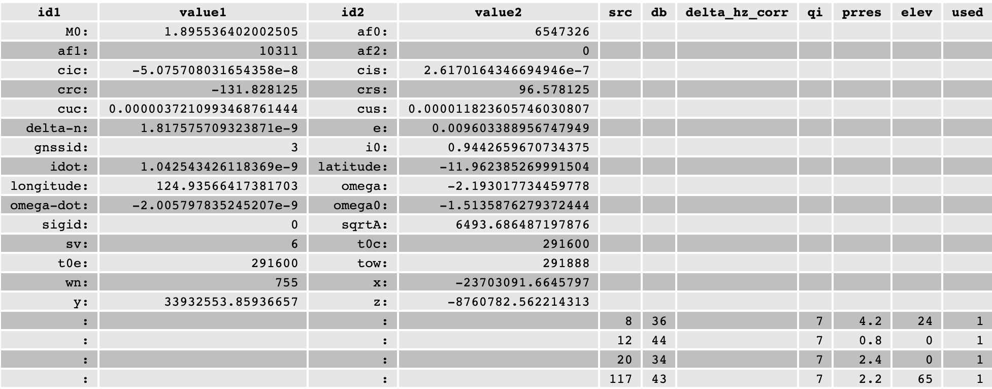 如果我们把当前的卫星位置和之后可预测的卫星位置统计起来,就生成了一张星历表。