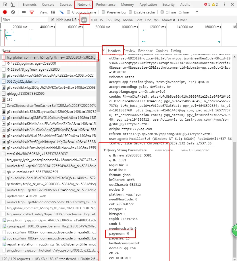 params = {'g_tk_new_20200303': '5381', 'g_tk': '5381', 'loginUin': '0', 'hostUin': '0', 'format': 'json', 'inCharset': 'utf8', 'outCharset': 'GB2312', 'notice': '0', 'platform': 'yqq.json', 'needNewCode': '0', 'cid': '205360772', 'reqtype': '2', 'biztype': '1', 'topid': '247347346', 'cmd': '6', 'needmusiccrit': '0', 'pagenum':n, 'pagesize': '15', 'lasthotcommentid': 'song_247347346_3297354203_1576305589', 'domain': 'qq.com', 'ct': '24', 'cv': '10101010'}