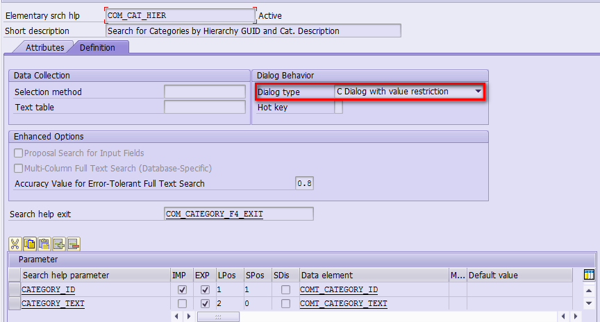 However, for category id, it is rendered as a popup dialog: