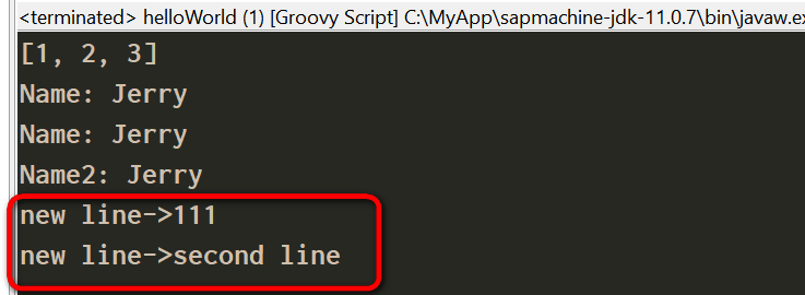 println "new line->" + it