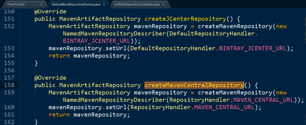 DefaultBaseRepositoryFactory的createMavenCentralRepository方法内,创建Maven仓库,url为Repository.MAVEN_CENTRAL_URL: