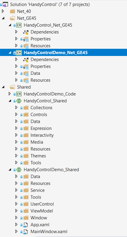 HandyControl源码(主要在HandyControl_Shared中)主要包含7个文件夹,对它们的描述如下表所示: