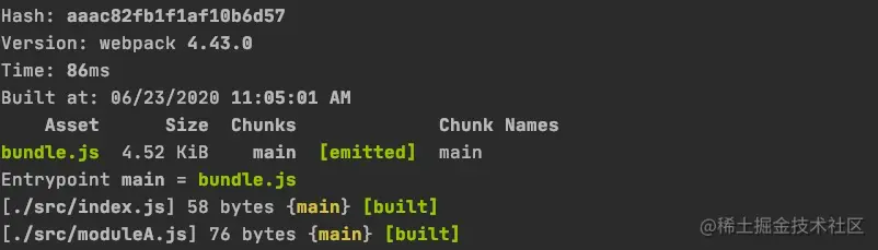 我们看看 "./src/moduleA.js" 代码会输出什么: