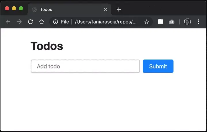 这对于现在的模型来说已经足够了。最后我们会将待办事项存储在 local storage 中,以使其成为半永久性的,但现在只要刷新页面,todo 就会刷新。