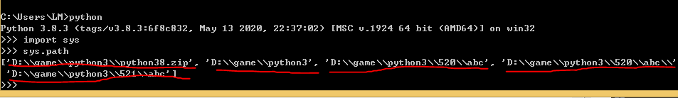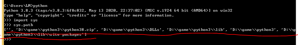 比前面的 D:\game\python3\python38.zip , D:\game\python3 多了三个