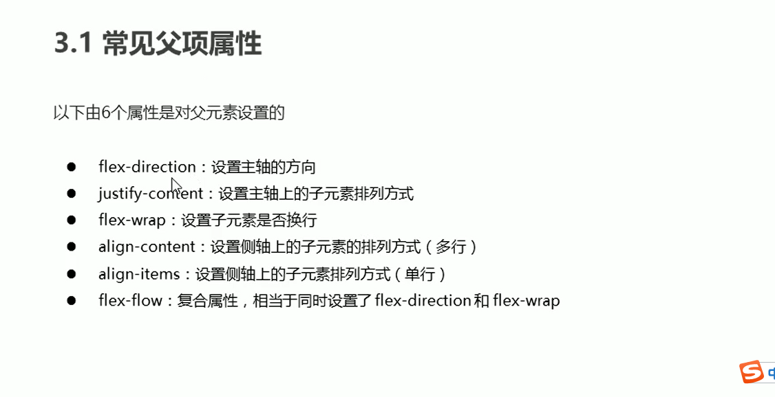 justify-content: flex-end; 注意是子盒子是没有从右向左边排列的