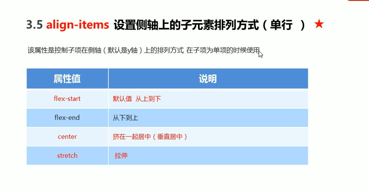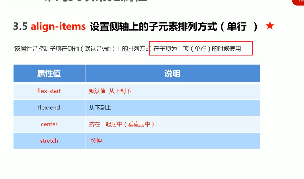 align-items 设置侧轴的(适用于单行)