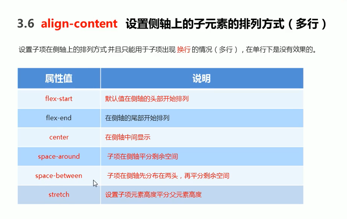 align-content (适用于多行)