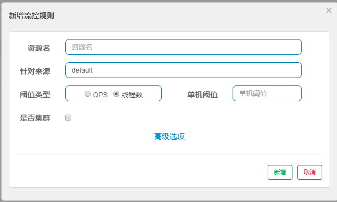 线程数:当单台机器上所有入口流量的并发线程数达到阈值即触发系统保护。