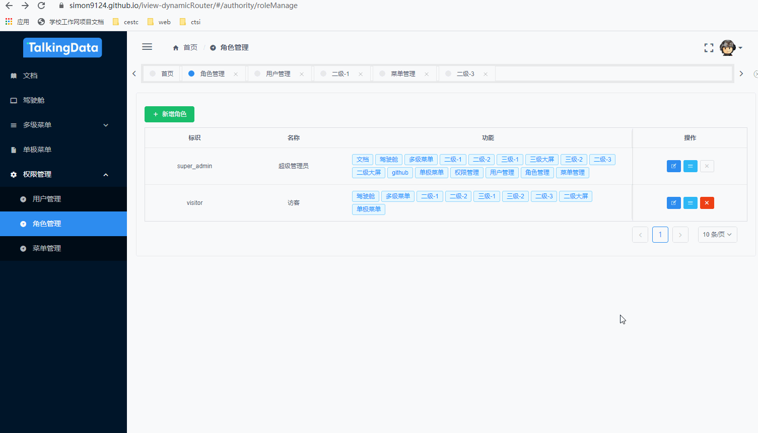 登录后,不同权限的用户监听到不同的动态路由和动态菜单: