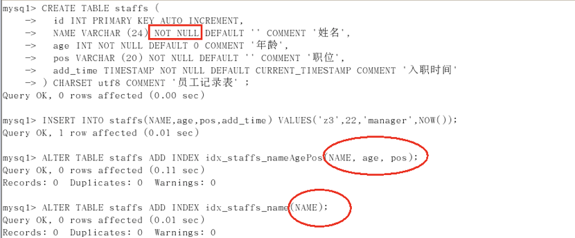 alter table staffs add index idx_staffs_nameAgePos(name,age,pos);