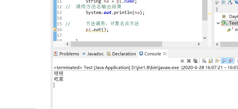 // 调用方法名输出结果