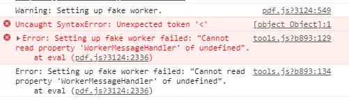 注意:import或者require引入workerSrc时,不能直接引入pdf.worker.js否则会报如下错误