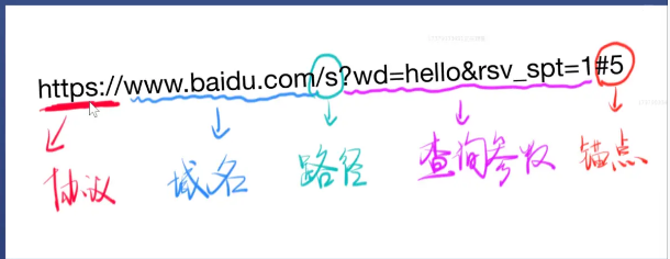 URL =协议+域名/IP+端口+路径+查询字符串+锚点