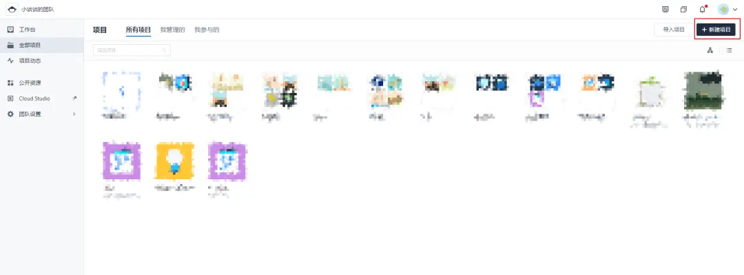 登录 CODING 工作台,进入全部项目模块,新建一个项目。
