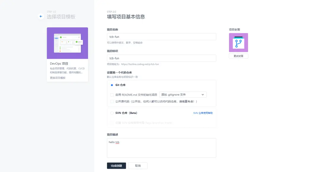 2. 在 CODING 中创建 DevOps 项目